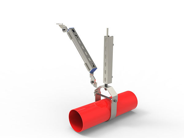單管側(cè)向抗震支吊架是連接于已做抗震設(shè)計(jì)的建筑結(jié)構(gòu)體的管路、槽系統(tǒng)及設(shè)備,以地震力為主要荷載的支撐系統(tǒng),單管側(cè)向抗震支吊架加裝的抗震支撐系統(tǒng)管路的各點(diǎn)位移,較未安裝抗震支撐者降低數(shù)十倍,能有效地提高了管路系統(tǒng)的抗震性能。